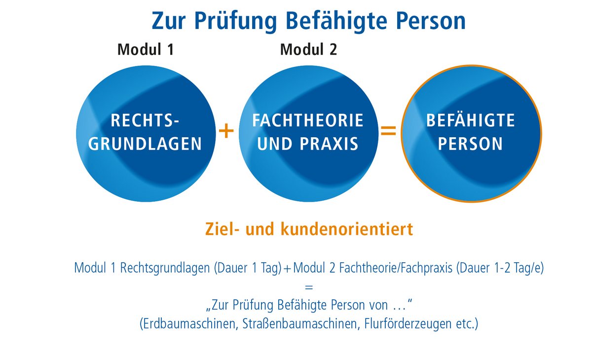 Die Weiterbildungsangebote der VDBUM Akademie sind modular aufgebaut und gliedern sich in ein Grundlagenmodul sowie themenspezifische Fachmodule. Modul 1 vermittelt die rechtlichen Grundlagen, die für alle befähigten Personen verpflichtend sind. Darauf aufbauend folgt Modul 2, das je nach Arbeitsmittel die erforderliche Fachtheorie und Fachpraxis abdeckt. Durch diese Struktur können Schulungen effizient kombiniert und Qualifikationen gezielt erweitert werden.